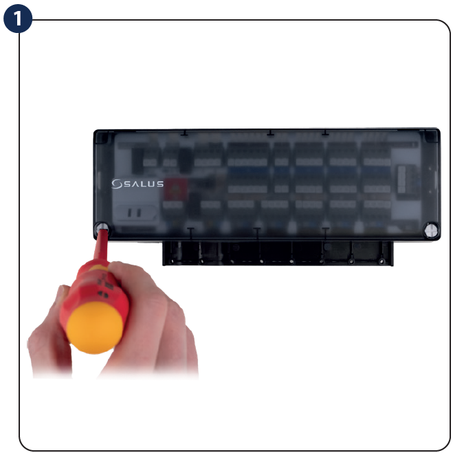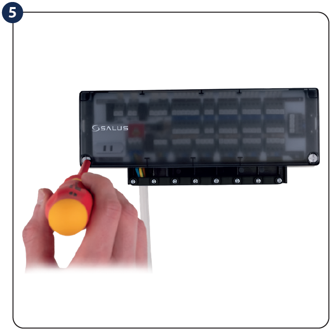 5. Po upewnieniu się, że wszystkie przewody są prawidłowo podłączone, zamontuj górną pokrywę i włącz listwę do zasilania 230 V - zapali się czerwona dioda „Power”.
