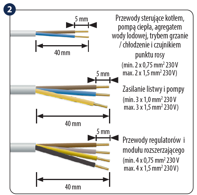 2. Usuń odpowiedni odcinek izolacji z przewodów.