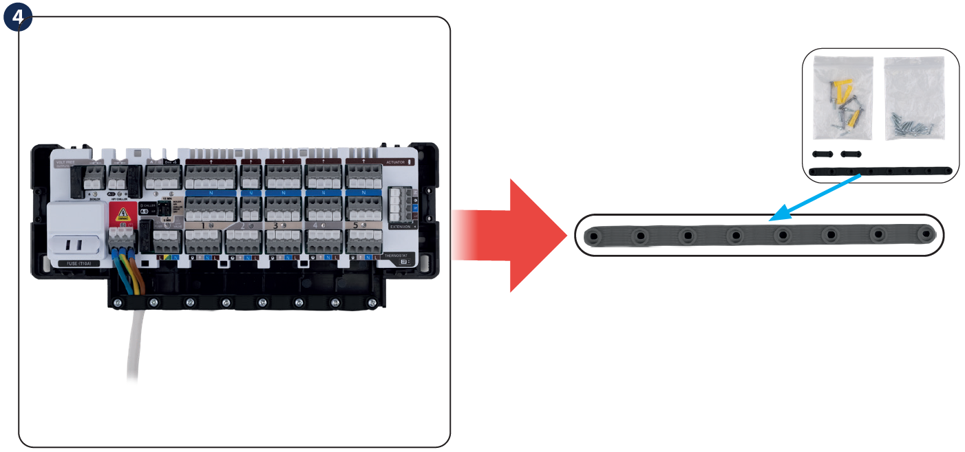 3. Podłącz przewody zgodnie ze schematami elektrycznymi. Kable możesz przeprowadzić przez tunel znajdujący się u spodu listwy.