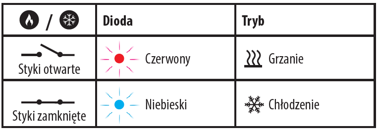 Gdy wejście GRZANIE / CHŁODZENIE jest zamknięte - znaczy to, że listwa