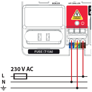 Opis listwy 1. Bezpiecznik topikowy rurkowy 5 x 20 mm T10A 2. Zasilanie 3. Funkcja NSB (nocna redukcja temperatury) 4. Zworki ustawień 5. Wyjście sterujące źródłem ciepła (beznapięciowe) 6. Wyjście pompy ciepła / agregatu wody lodowej (beznapięciowe) ...