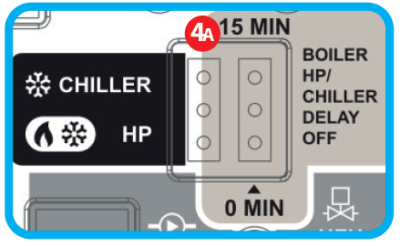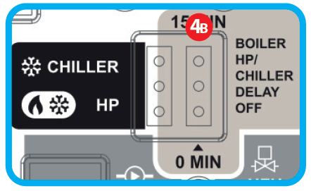Zworka ustawia opóźnienie wyłączenia wyjść BOILER i HP / CHILLER.